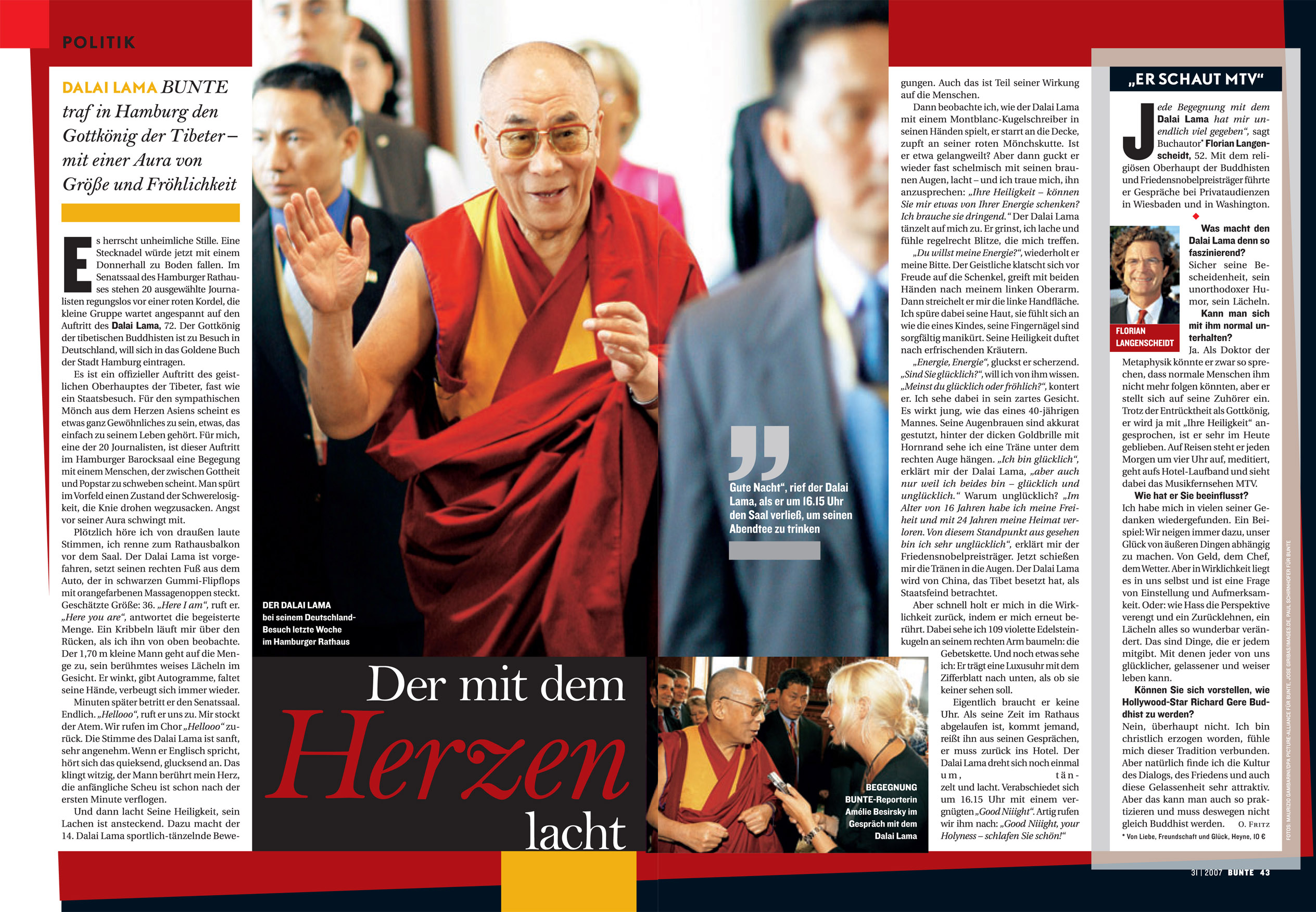 Some encounters on her long flight will last forever and made her to the person she is today. Like for example the interview with the Dalai Lama. The assignment to proverbially sit on the arm of the spiritual leader didn’t worry Ms. Butterfly; more: „What language do I address him in? After all, he speaks eighteen and I only four?“ The editor-in-chief’s answer was: „Use the one you know best; the language of your heart!“