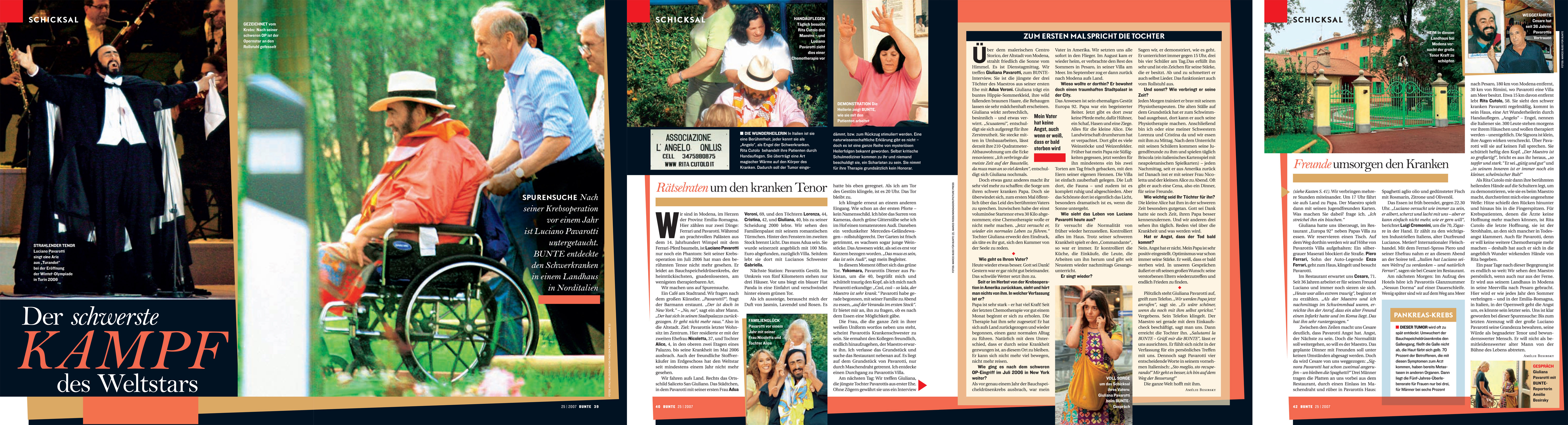 While the rest of the world pres was still feverishly looking for the Italian maestro Luciano Pavarotti, ‘Signora Farfalla’ successfully picked up the scent. During a flight over the countryside of ‘Bella Italia’, thanks to her faceted eyes, she by chance discovered his well camouflaged last residence. The story in the German magazine BUNTE wrote press history and was reprinted worldwide.